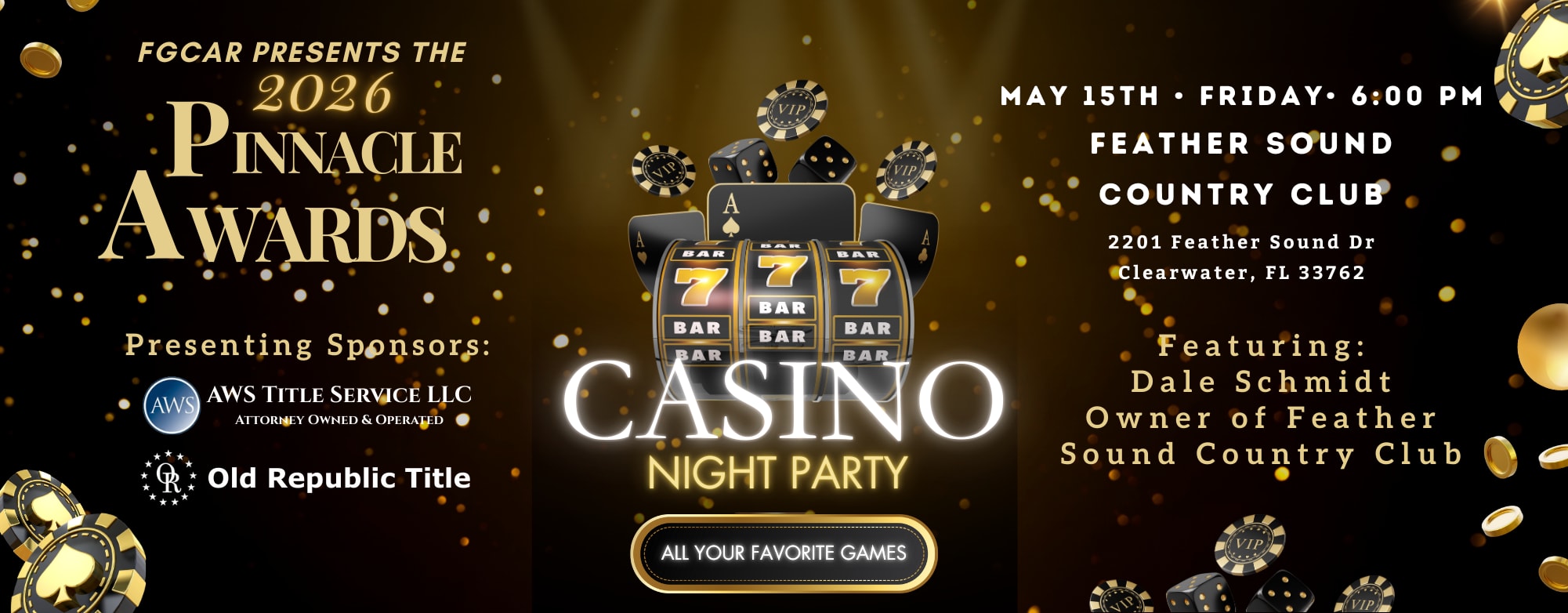 You are cordially invited to an evening of celebration, sophistication, and high stakes as we gather for the Florida Gulfcoast Commercial Association of REALTORS® 2026 Pinnacle Awards & Casino Night Gala — a celebration honoring excellence in commercial real estate.